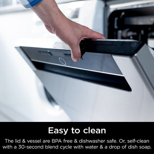 The lid and vessel are BPA free and dishwasher safe. The blender can also self-clean with a 30-second blend cycle with water and a drop of dish soap.